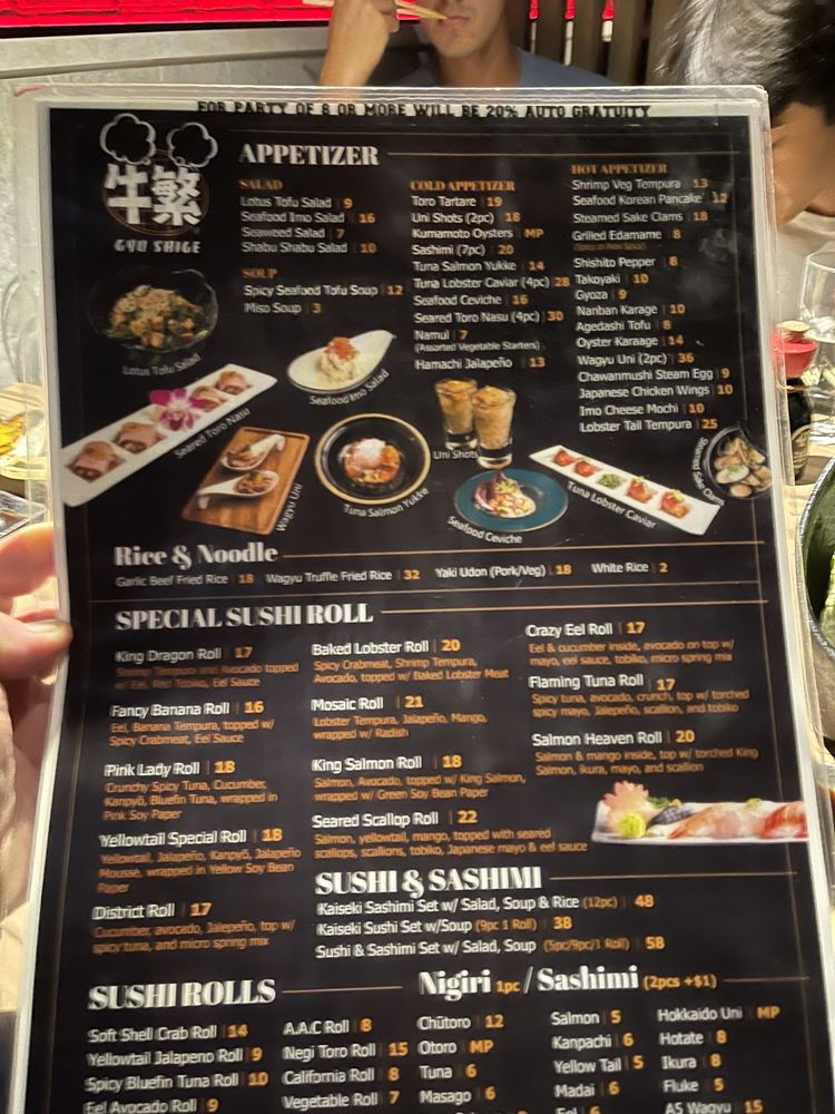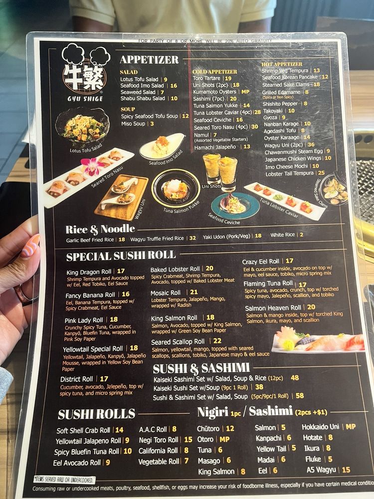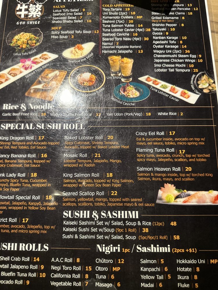 Gyu Shige is a trendy and upscale Japanese BBQ restaurant located in Fairfax, VA. They offer a unique dining experience where customers can grill meats tabletop and enjoy interactive rolls. Their menu includes a variety of dishes such as A5 Wagyu Ribeye Steak, Wagyu Truffle Fried Rice, Boneless Prime Short Ribs, Takoyaki, and more. Customers have praised the quality of the meat, friendly service, and creative drinks. The restaurant also provides outdoor seating, catering options, and happy hour specials. Overall, Gyu Shige is a highly recommended spot for a fun and delicious dinner out, although it may be on the pricey side. Be sure to make reservations in advance to guarantee a memorable dining experience.